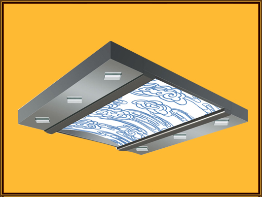 影像拱顶加两侧菱形中空透明灯柱的柔光照明设计