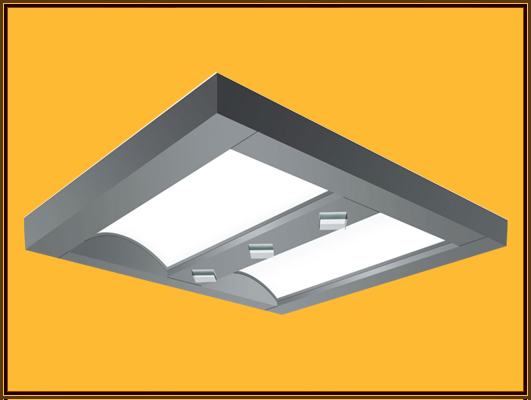 双拱形白色透光板,加中部菱形透明灯柱的柔光照明设计。