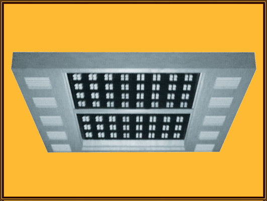 多层反交板,辅以长方形中空透明灯柱。