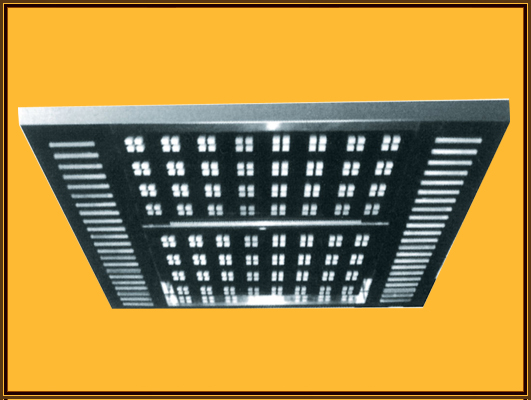 多层反光板,辅以长方形中空透明灯柱的柔光照明设计。