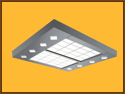 中间是喷绘板,两侧为不锈钢底板上辅以方形有机柱的柔光照明设计。