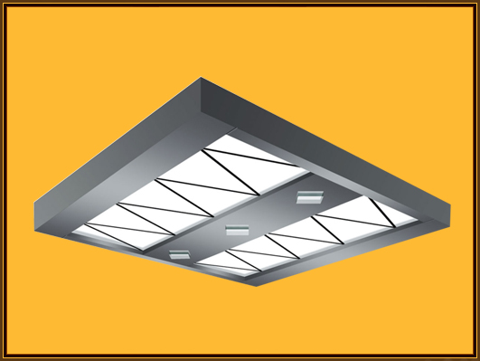 影像平顶加中部中空菱形透明灯柱的柔光照明设计。